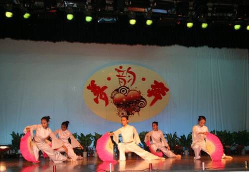随后,在悠扬回荡的扬琴声中,晚会进入第二篇章《韵》。诗韵、风韵、雅韵、情韵构成了威尼斯7798cc的清雅风骨,体现了威尼斯7798cc努力建设独具“韵”味特色的校园文化。院学生艺术团民乐队演奏的《金蛇狂舞》清脆嘹亮,歌曲《清明雨上》则让大家回味无穷,独具古典韵味的管弦乐伴舞《读梁祝》则深深体现着大学生深厚的同窗之情;现代舞《变奏》、《bottons》舞出了大学生的活力与时尚;由不同年级同学带来的英文歌曲联唱《英伦风情》优美动听,不时博得场下阵阵掌声。