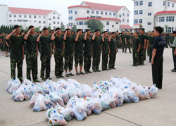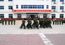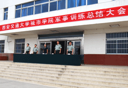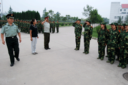 8月27日上午,学院2008年学生军训总结大会在西安市民兵训练基地隆重举行。基地主楼广场上,近450名“士兵”,排列成10个整齐的方阵,庄严地接受了学院党委副书记、副院长韩超和军训办公室副主任孙永星的检阅。