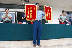 大会由军训办公室主任马兆平主持,军训办公室副主任张学堂作总结报告。学院党委副书记、副院长韩超代表学院向西安市民兵训练基地赠送了锦旗,内容为:军训锤炼莘莘学子,携手共筑钢铁长城。