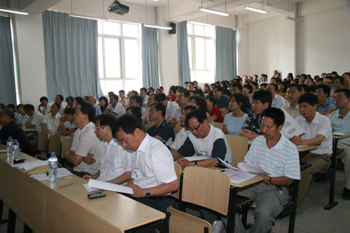 随着2008北京奥运会的圆满闭幕,我院全体教职员工以全新面貌迎来了新的学年。8月25日,学院在教学楼A200阶梯教室召开“2008年暑期工作会议暨第三次教育教学改革研讨会”,大会由副院长李能贵教授主持,党委副书记、副院长韩超副研究员作了关于学风建设的报告,党委书记、常务副院长陈光德教授作了关于制定员工绩效考核工作办法及修订学生培养方案的动员讲话。