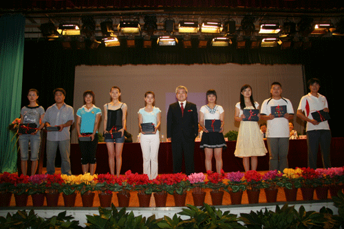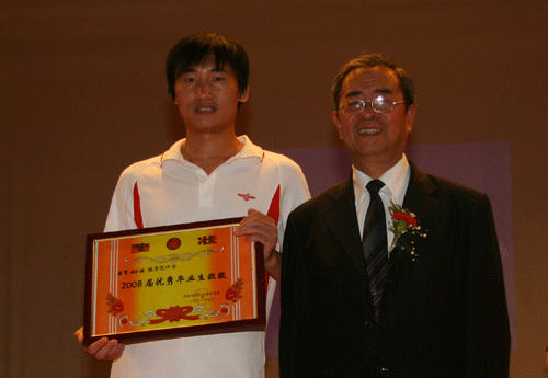 再次,学院党委副书记、副院长韩超副研究员宣读优秀毕业生表彰决定。接下来由副院长李能贵教授、副院长韩超副研究员分别为学院2008届优秀毕业生班级和优秀毕业生宿舍颁奖;交大博通公司总裁、学院董事会董事长雷厉先生,西安交大产业集团党委书记、学院董事雷锦录先生,西安交大社会教育管理处处长、学院董事冯晓光先生分别为陕西省2008届优秀毕业生、学院2008届优秀毕业生颁奖;在毕业生互赠纪念品仪式中,副院长张敬朝高级工程师代表学院为毕业生赠送纪念品,毕业生代表李相德同学代表全体毕业生为母校赠送纪念品。最后,西安交通大学副校长、学院董事会副董事长、学院院长席酉民教授庄严地为毕业生颁发了毕业证书,将毕业典礼推至高潮。