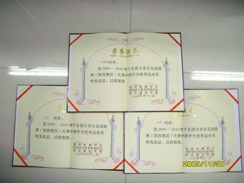 我院足球队在2009―2010李宁中国大学生足球联赛陕西赛区选拔赛暨2009年陕西省大学生足球联赛中获得亚军。