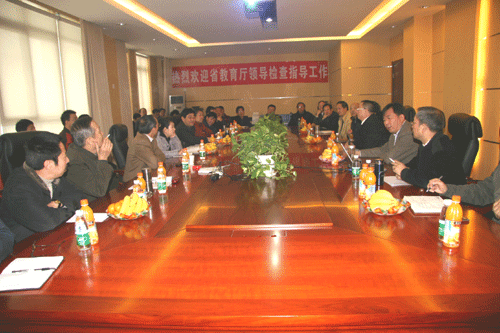 11月11日上午,省教育厅发展规划处叶军副处长来我院检查指导工作。学院董事长雷厉先生、西安交大社会教育管理处处长冯晓光教授以及我院领导班子全体成员,在行政楼608会议室向教育厅检查组汇报了我院建设发展情况。