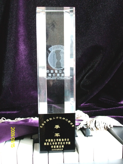 近期,在南昌大学科技学院举办的首届中国独立学院辩论邀请赛落下帷幕。我院辩论队获得季军。我院陶诗元同学荣膺最佳辩手称号。