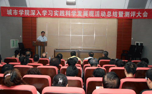 学习实践科学发展观活动已告一段落,可学院在大会上仍提出了今后进一步推进整改提高工作的更高要求。学院党委号召全体教职工继续保持良好的工作状态,巩固和发展学习实践活动的成果,以优异的教育教学成果向新中国成立六十周年献礼。