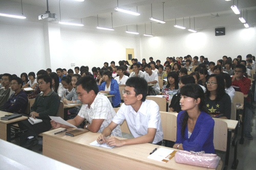 解老师主要从专业培养目标与教学,艺术系三年来所取得的成绩两个方面进行了介绍,对艺术系目前所开设的书法、平面设计和动画专业的课程设置及培养目标,近期规划及长远规划,专业学习及市场需求,实践应用及就业趋势等方面做了详实的阐述,鼓励同学们提高学习积极性,明确学习目标,为今后的成功打下坚实的基础。解老师的报告博得同学们的阵阵掌声。