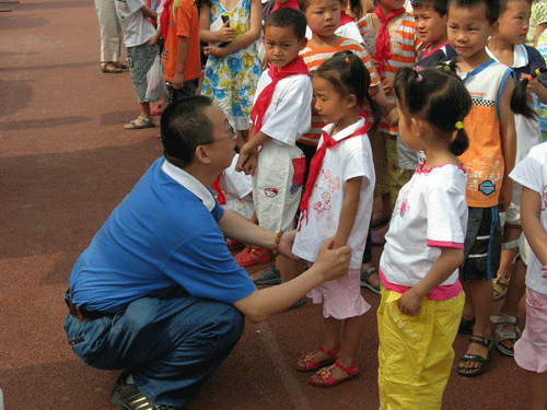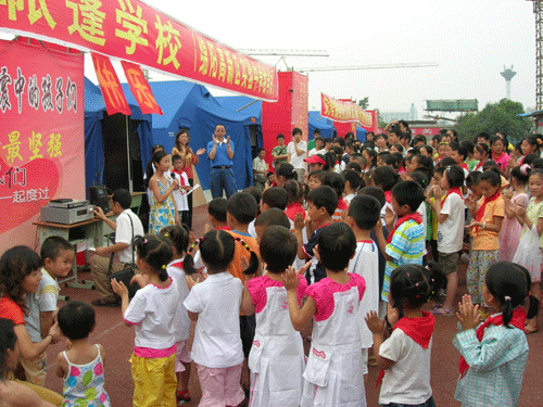 5月31日至6月1日,交大威尼斯7798cc董事长雷厉带领部分师生和交大博通公司的相关人员前往此次汶川大地震重灾区绵阳市,向灾区同胞捐钱捐物、奉献爱心,并为绵阳帐篷学校里的小朋友带去儿童节的祝福与问候。