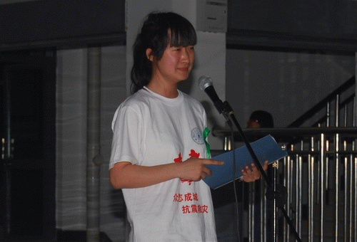 2008年5月22日晚七点,由我院学生会与社团联合会共同举办的“逝者安息,生者奋发,天佑中华,爱满人间”赈灾义演、义拍特别活动在教学楼D座大厅成功举行,学生服务中心副主任张学堂老师、学生服务中心陈涛老师等参加了本次活动。
