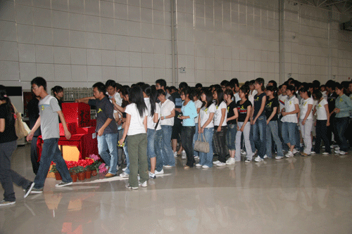 随着活动的开始,为了哀悼5・12汶川大地震中遇难同胞,国旗手将刚升起的国旗徐徐下降了三分之一,全场气氛凝重。14时28分,韩超副院长宣布向地震遇难者默哀3分钟,大家无不肃穆。