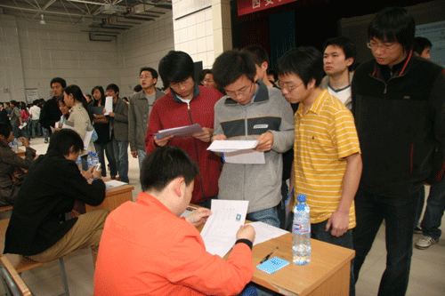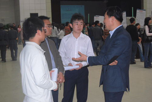 4月10日,我院2008届毕业生春季就业双向选择招聘会在学院学生活动中心隆重举行。学院党委书记、常务副院长陈光德,党委副书记、副院长韩超,副院长李能贵及各中心领导到会场指导招聘会有关工作,各系主任及专业教师也到现场为毕业生做指导。西北工业大学明德学院等8所独立学院的毕业生也受邀参加了此次招聘会。