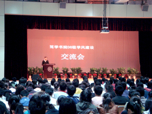 2008年4月1日晚,笃学书院06级学风建设交流会在学生活动中心隆重举行。笃学书院06级全体学生和辅导员参加交流会。