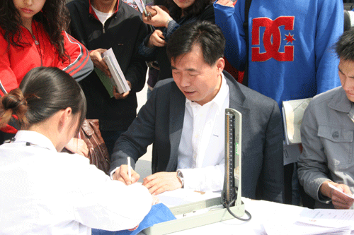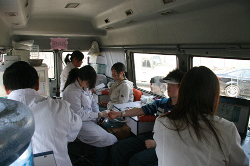 中午11时,西安市中心血站的采血车徐徐驶入我院,等候已久的同学们便迫不及待地排好队踊跃参加献血,由团委组织的志愿者们耐心指导献血的同学体检、登记、抽血、发放献血证明等,使现场秩序井井有条。在采血车上进行献血的师生们个个面露微笑,积极配合血站的工作人员,得到较高评价。
