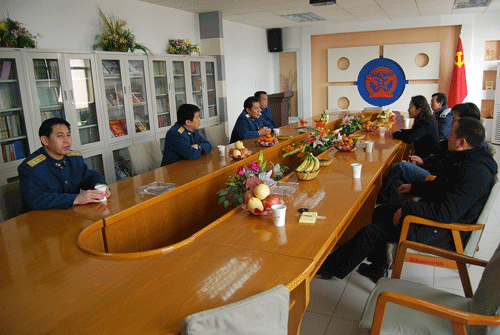 空军工程大学理学院一旅旅长王晓东大校、政委李常明上校、副旅长贾峻上校等对我院慰问团表示热烈欢迎。在座谈中,韩超副书记介绍了我院2007年的建设与发展情况,向空军工程大学对我院军训工作的支持表示感谢,并希望两院之间的合作进一步加强,创出军地合作的典范。
