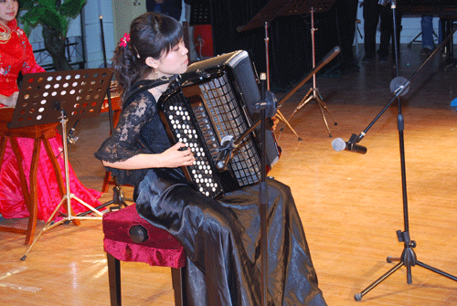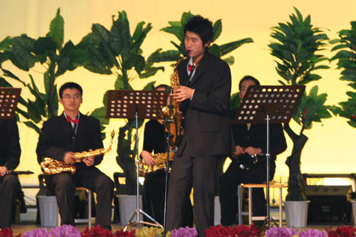 本次音乐会分为难忘07、喜迎08和祖国颂三个乐章。整场音乐会在《铃儿叮当响》的欢快音符中拉开了帷幕。一曲《喜洋洋》以坚定有力的节奏一气呵成,笛子声部的重迭、顿音和加花的手法,轻快活泼,并增加了热情洋溢的气氛,二胡以各种技巧润饰旋律,木鱼则以规整的节奏衬托曲调,喜悦的歌声犹闻在耳,艺术团的同学们用传统的音韵叩响了时间老人前进的步伐,见证了民族的才是世界的,将音乐会推向了高潮。学院青年教工马妤和马蕊分别以钢琴独奏《少女的祈祷》和手风琴独奏《小河淌水》为广大师生送去了新年的祝福。