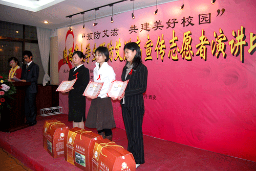 12月28日下午,由团省委、省教育厅、省卫生厅联合主办的“陕西省大学生预防爱滋病宣传志愿者演讲比赛”在省军区招待所举行。我院派张凌雁和陈璐两名学生参加,演讲的题目分别是《让阳光点亮阴霾》和《为了生命不再凋零》,分获一等奖和三等奖的优异成绩。