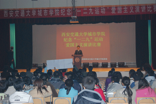 12月9日晚8点,学院在学生活动中心举行纪念“一二・九”运动爱国主义演讲比赛。学院党总支副书记、副院长韩超,学生教育及后勤服务中心副主任张学堂以及刘庆阳、陈涛老师等出席了演讲比赛。