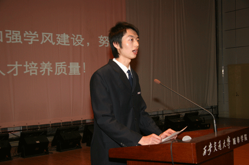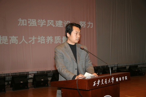 12月6日下午学院在学生活动中心隆重召开学风建设动员大会,此次大会的召开意味着学院“学风建设月”活动的正式启动。“学风建设月”活动的时间定为2007年12月6日至2008年1月6日。