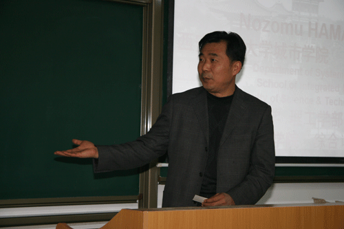 陈光德副院长首先致欢迎词,他热情洋溢的讲话中希望这样的跨国学术交流报告应多举办,不仅能丰富同学们的知识面,还能有效地增强我院的学术氛围。在浜田望博士的精彩学术报告中,英文授课方式激发起同学们极大的兴趣,在讲解“信号处理与应用”的相关专业术语时,他深入浅出,诙谐幽默的语言赢得在场师生们的阵阵掌声。