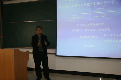 2007年11月13日,学院在教学楼D305大教室召开了教学改革研讨经验交流会。会议由教学服务中心主任李崇祥教授主持,副院长李能贵教授作了“培养高素质应用型人才应重点把握的十个问题”的主题报告。