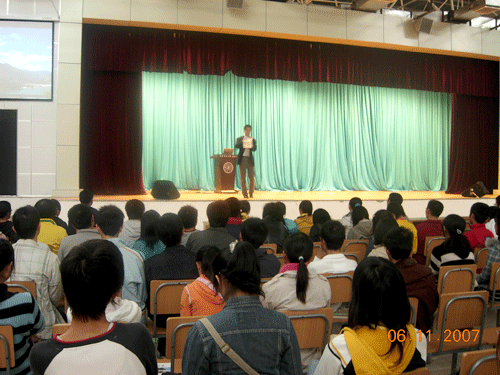2007年11月6日下午3时,学院百家讲堂之八方视点报告会在大学生活动中心隆重举行。本期“八方视点”学院邀请到西安交通大学人文学院韩建通副教授作了题为“着眼未来,大学生人生规划”的专题报告会。