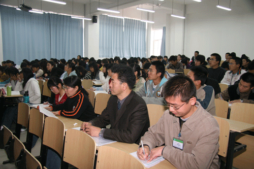 听完报告会后,专家组三人分别随机抽查到教学楼C100、C300、D200教室进行听课,尔后,他们又现场考察了实验室等教学条件,并于下午召开了教师及学生座谈会,查阅学院有关文件资料,最后提出反馈意见。