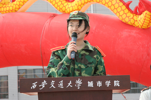 06、07级同学身着迷彩服,在教官的带领下8点准时集合,兴致勃勃地迎来了大学军训生活的第一天。10点30分,学院隆重召开了军训动员大会。大会由学生教育及后勤服务中心马兆平主任主持,在庄严的国歌声之后,党总支副书记、副院长韩超副研究员郑重宣布学院军训团正式成立,党总支书记、常务副院长陈光德教授给军训团授旗,空军工程大学理学院旅长王晓东大校作了重要指示。尔后,承训教官金刚代表空军工程大学理学院承担此次军训任务的50多名官兵、参训学生张凌雁代表近3000名学生分别作了发言,表达了他们圆满完成此次军训任务的决心和信心。最后全体参训学员的入伍宣誓仪式将军训动员大会推向了高潮,学生军训动员大会在嘹亮的口号声中圆满结束。