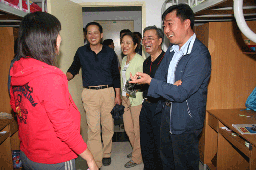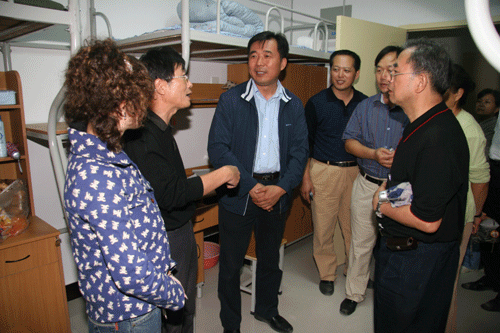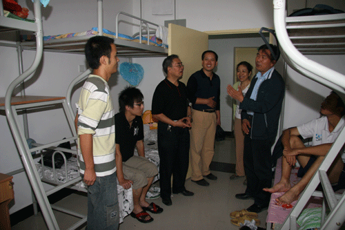 9月12日下午,在行政中心、学生中心及筹建处等部门有关负责人的陪同下,陈光德常务副院长带领学院领导班子来到新生宿舍,看望2007级新同学。