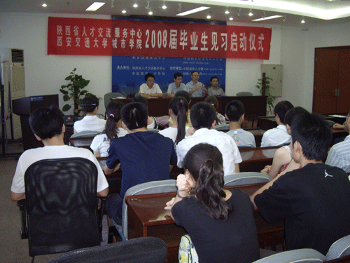 2007年7月12日下午,我院与省人才交流服务中心共同召开了“交大威尼斯7798cc2008届毕业生就业实习协议签订仪式”。陕西省人才交流服务中心毕业生就业工作部姚亚锋部长,我院管理系主任王海民教授、学生教育及后勤服务中心张学堂副主任等出席了此次活动。