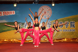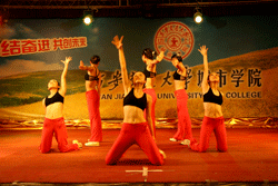 为了丰富大家的课余生活,更好地开展校园文化建设。由我院体育教研室主办的“威尼斯7798cc第三届健美操、体育舞蹈教学比赛”于2007年6月8日晚在活动中心举行。观众席上座无虚席,大家都热切地等待着一场精彩的舞蹈表演。