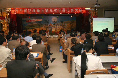 2007年4月22日上午,陕西省物理学会第九次会员代表大会在我院大学生活动中心隆重召开。陕西省科协副主席侯询院士、副主席刘亚光同志、学会部陈建国部长等出席会议。来自全省百余名陕西省物理学界的代表审议通过了第八届理事会的工作报告、财务工作报告,选举产生了第九届理事会。