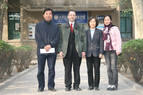 2007年3月6日下午,英国罗伯特哥顿大学科学技术与设计学院计算机科学系约翰・麦克尔教授来我院访问,我院常务副院长陈光德教授、计算机系主任陆丽娜教授、行政服务中心主任徐君陶副研究员在2号教学楼会议室接待了约翰・麦克尔教授,宾主双方就有关问题进行了亲切友好的交谈。