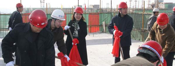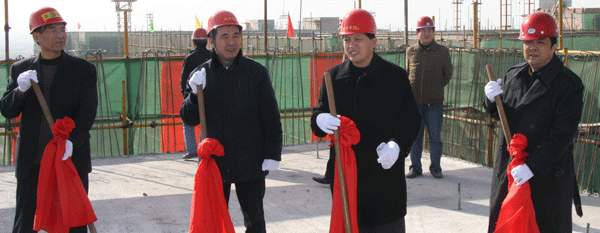 2007年元月28日上午11时,学院隆重举行学生公寓、食堂、浴室封顶仪式。
