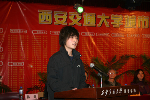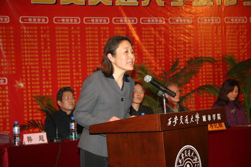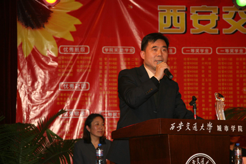 党总支副书记、副院长韩超副研究员主持大会并宣读了学院的表彰通报。党总支书记、常务副院长陈光德教授、副院长张敬朝高级工程师、首席教授寿纪麟教授、陈道真教授、李甲科教授、王海民教授、迟钦河教授以及西安经发集团党委副书记王自治先生、西安交大博通公司总工程师江开耀先生、陕西怡兰企业集团副董事长林湘莲女士等出席大会并为以上获奖学生颁发奖状和获奖证书。