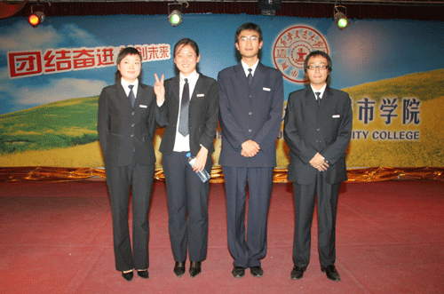 我院辩论队出席本场比赛的辩手分别是:一辩王晶同学(国贸401班);二辩武珈羽同学(经管511班);三辩马骏飞同学(经管510班);四辩李浩源同学(经管502班)。比赛中,我方一辩王晶同学所表现出富于涵养的仪态,排山倒海、势如破竹般的攻势就明显更胜一筹;二辩武珈羽在自由辩论阶段向对方发起的反问“难道我国不够民主和法制化吗?”使对方精心设计的陷阱毫无用武之地;三辩马骏飞将对方“假设困境”的巧妙破解博得观众掌声阵阵。四辩李浩源的总结陈词异常精彩,再次重申我方观点,摆出对方辩论中的纰漏并给予了客观的阐释,可谓是锦上添花。