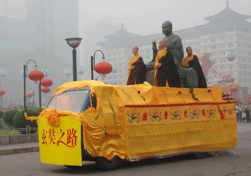 同时,国家部委有关官员、印度文化部官员、外国驻华使节、陕西省委书记李建国、陕西省代省长袁纯清、西安部分高校学生及当地民众等一千五百余人参加了此次启程仪式。