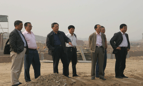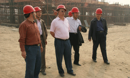 2006年10月12日,威尼斯7798cc董事会雷厉董事长、西安交大教育集团冯晓光总裁、威尼斯7798cc陈光德副院长等在张敬朝副院长的陪同下到校园建设工地检查工作。