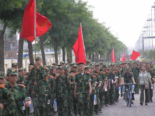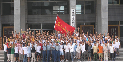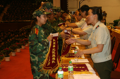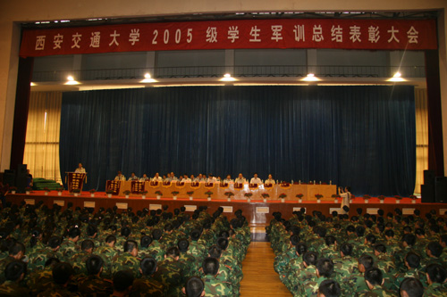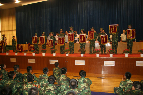 7月18日下午,西安交通大学在思源活动中心召开了2005级学生军训总结表彰大会。大会由军训旅旅长张正明主持,军训旅政委郭小平作了军训总结,政治部主任常涛宣布了军训旅关于表彰、奖励的决定,有关领导同志为优胜连队颁发了锦旗。我院如下单位和个人受到交大军训旅表彰: