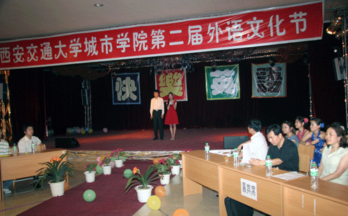 本次外语交流晚会由学院英语课程组谢蕾老师、赵红霞老师以及部分学生参与的“快乐英语”口语互动环节拉开帷幕,各国的风情舞蹈、反串剧、外文歌曲等节目把晚会的气氛一次次推向高潮。特别是在《心的聆听》节目中,全体班主任与学生的心灵交流,进而更加拉近广大师生的距离。同时,在本次晚会上来自西安音乐学院、西安外国语大学、西安科技大学的同学也带来了精彩的节目,可谓是锦上添花。