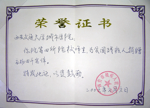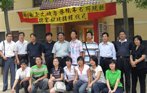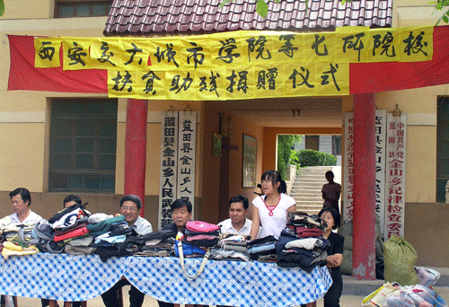 2006年6月6日,我院团委书记陈涛老师和学院学生会的部分干部与西安市残疾人联合会相关部门领导以及西安地区4所兄弟院校的学生代表一行20余人,前往蓝田县金山乡政府举行扶贫助残捐赠活动。