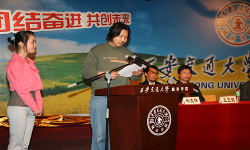 2006年3月30日晚,中国书法家协会顾问、陕西省书法家协会副主席、西安交通大学人文学院艺术系主任钟明善教授学术报告暨西安地区九所高校“大学生书画•摄影巡回展”闭幕式在我院大学生活动中心隆重举行。