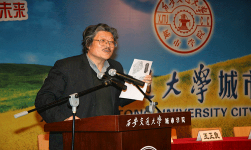 著名书法家、书论家、篆刻家和书法艺术教育家钟明善教授在“大学生书画•摄影巡回展”闭幕式结束之后,作了“书法艺术欣赏与创作”的精彩报告。钟明善教授在报告中对此次由我院主办的西安地区九所高校大学生书画摄影巡回展的成功举办表示衷心的祝贺,并从我国书法与文化的起源着手,结合我国书法的发展以及中外书法的比较,引经据典,深入浅出,绘声绘色地讲述了中国书法之美。钟明善教授把书法创作概括为“起于点画用笔,基于单字结构,成于整幅章法,美于风神气韵,求工于一笔之内,寄情于点画之间,法度森严而又变化无穷”。 钟明善教授在报告中强调书法家的创作过程是万途归一,以抽象的点画表情达意,书法欣赏则是运用联想寻求书法作品的字外之意,寻找构成书法形象意的诸种元素。钟明善教授还在报告中阐发了中国传统文化的精髓之阴阳对立统一,和易与变的思想,明确提出中国书法是中华民族传统文化最凝练的物化形态,围绕书法的基本要素、中国传统文化的本质以及中国书法与中国传统文化的关系等问题向大家传授了书法艺术欣赏与创作的基本方法,使大家对我国传统文化与书法的魅力有了深入了解,开阔了视野,陶冶了情操。钟明善教授语言诙谐,文字质朴,谦虚严谨,体现了一位学者大家的儒雅风范,整场报告富有浓厚的人文气息,受到了全场师生的热烈欢迎。