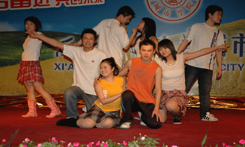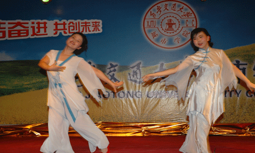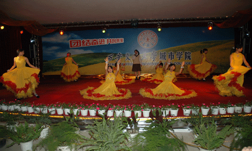 数十名师生登台向大家献上了20余个多彩多姿的文艺节目,参加演出的既有十八、九岁的莘莘学子,也有六十余岁的老教授,特别是信息408班高孝儒、严茹、宋炜等同学自编自演的话剧《爱心、良知与责任感》和全体班主任老师演出的小合唱《牵手》深深地打动了广大观众的心。