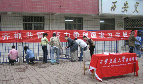 今年4月是我国第17个“爱国卫生月”。为了积极响应全民爱国卫生运动,学院于4月9日上午9:00―11:00组织院团委、学生会、学生社团及消防队部分学生干部在学院周边地带开展了爱国卫生宣传及公益活动。通过学生的宣传与感染,翠华路沿街店铺也纷纷响应起来,形成了一个“人人动手,齐抓共管”的良好局面。