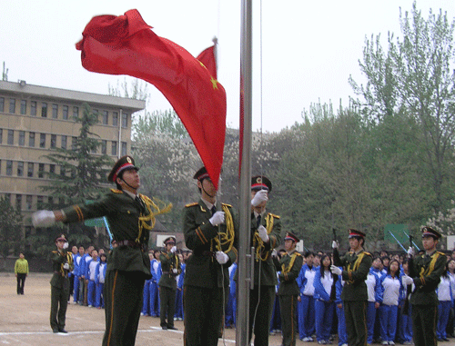 7:22分,在庄严、肃穆的气氛中升国旗仪式圆满结束。