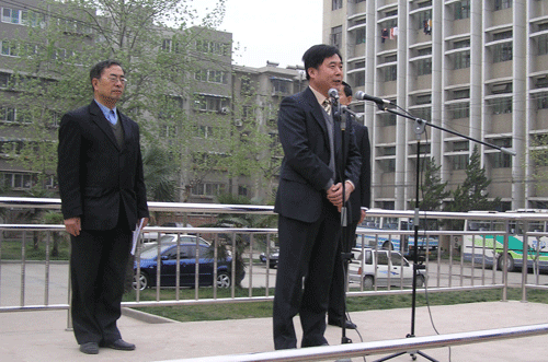 本次升国旗仪式由副院长李能贵教授主持,院党总支副书记、常务副院长陈光德教授作了重要讲话。出席本次升旗仪式的嘉宾和领导还有西安交通大学军事教研室主任张正明教授、院学生教育及后勤服务中心副主任马兆平老师等。