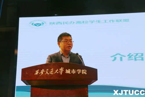 联盟理事单位代表西安思源学院学生工作部部长胡贵生发言,他表示作为联盟成员单位,将坚决支持和维护陕西民办高校学生工作联盟章程,严格履行成员义务;凝聚成员集体智慧,支持联盟工作开展;以立德树人为根本,推动联盟工作发展。