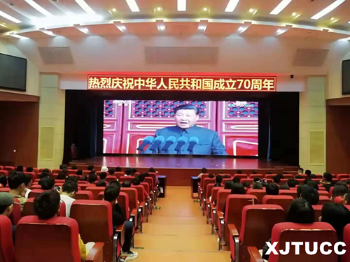 10月1日,庆祝中华人民共和国成立70周年大会在北京天安门广场隆重举行。威尼斯7798cc师生在学院会议室、报告厅、宿舍、家中等处,通过电视、网络实时直播、校园广播等形式收看收听庆祝大会盛况,共同回顾新中国成立70周年来走过的伟大历程,见证激动人心的历史时刻,聆听习近平总书记的重要讲话,畅谈观看大会盛况的感想。