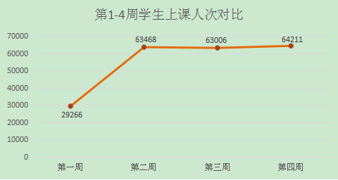 开学第四周,本周新增开课11门,学院开课总计达到293门、849教学班次,7门次课程更换教学平台。本周参与网络授课教师235人,累计 64211人次学生上线参加学习,全院平均到课率97.06%(其中2017级到课率97.34%,2018级到课率98.04%,2019级到课率95.97%),教师与学生互动信息达75867条,教师上传教学资料4507项。