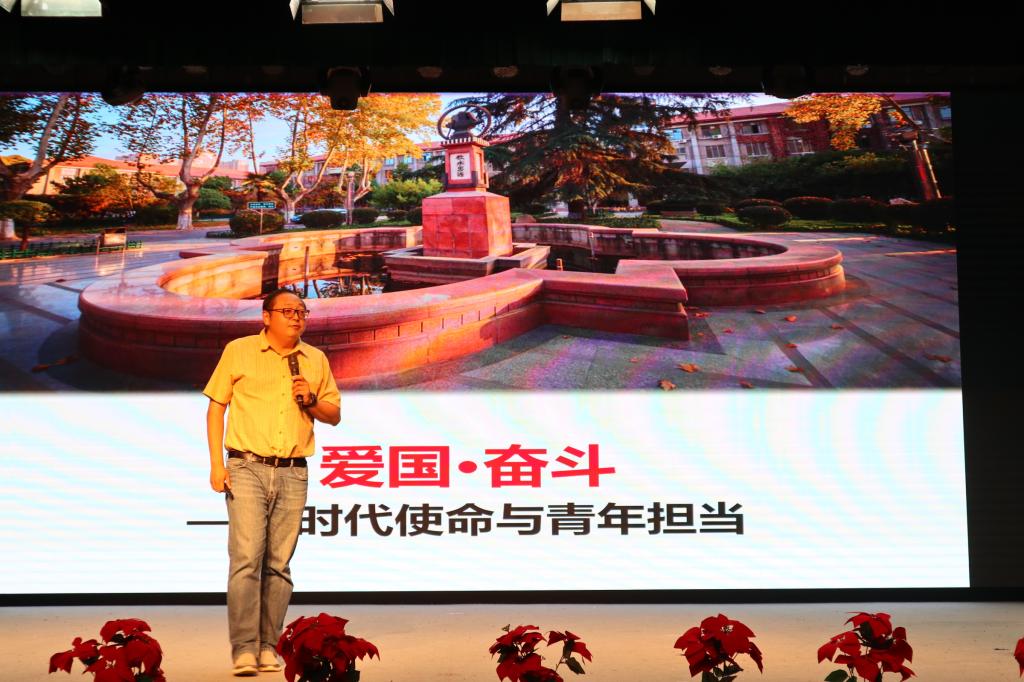 典礼结束后,张爱萍书记为大家带来了“爱国奋斗——时代使命与青年担当”的专题讲座。从西迁的历史、过程到“西迁精神”内涵,他强调到“西迁精神”的核心是爱国主义,精髓是听党指挥跟党走,与党和国家、与民族和人民同呼吸,共命运。在对“西迁精神”的理解上要将道德层面与国家战略层次相结合,与社会主要矛盾相结合。他指出同学们要与党同向同行,在爱国的集体里做一个乐观的英雄。张书记幽默风趣,深入浅出,同学们听课热情积极高涨。