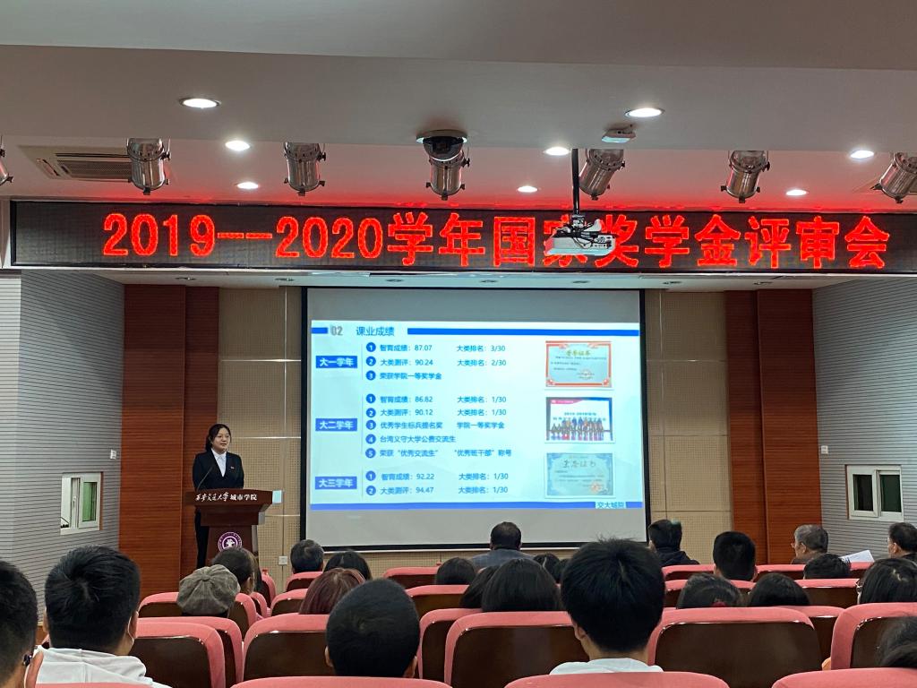 随后,经各系系内答辩后推选出的需要参加学院答辩评审的10名候选人从个人上学年学习成绩、创新能力、社会实践及综合素质等四个方面分别进行了答辩汇报。评审专家认真听取了每位候选人的汇报并本着公平、公正、客观的原则对每位答辩同学进行严格评审;同时评审专家还对相关系系内确定的5名正式候选人进行了审查。最终确定推荐于珍妮等13名学生作为我院国家奖学金候选人建议名单进行公示并上报教育厅会审。